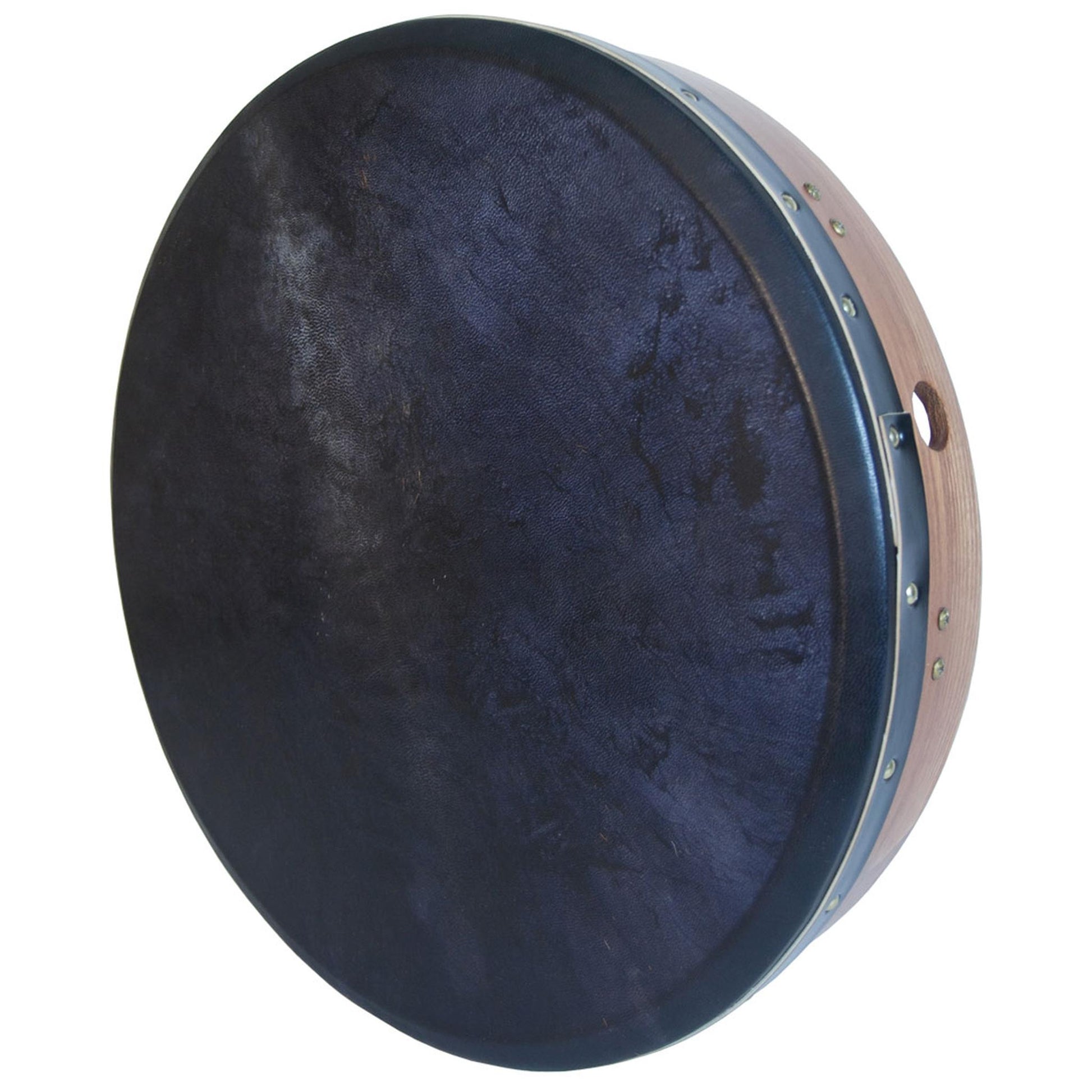 18" x 3.5" red cedar bodhran with inside tuning and two cross bars. This solid red cedar frame has a fixed crossbar for support. The bolt tuning is hidden on the inside of the frame. You will love the sound of the black goatskin head. Easy and fun to play. The enclosed product insert will give you the basics to get started. Includes a tipper and a tuning wrench.